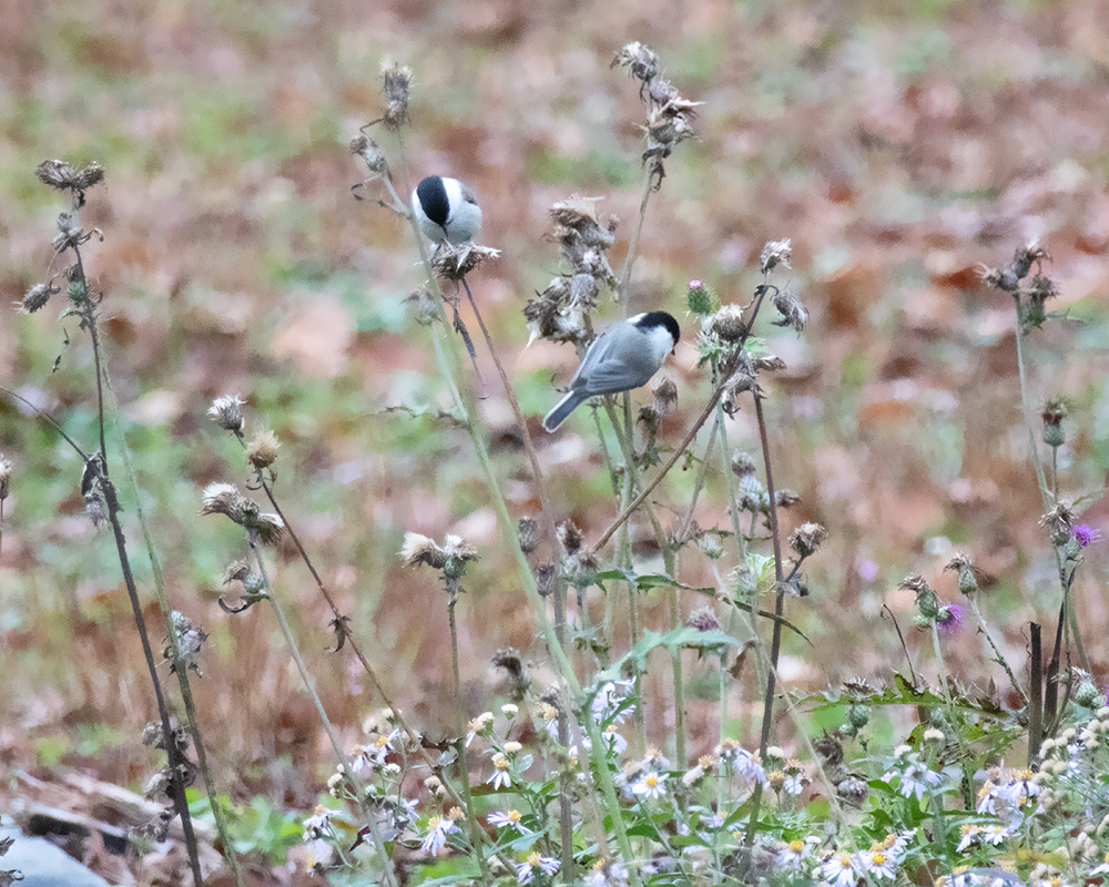 背の高い草に止まったり、枝に上がったり、地面近くでガサガサしたり…数羽が活発に動いていました。