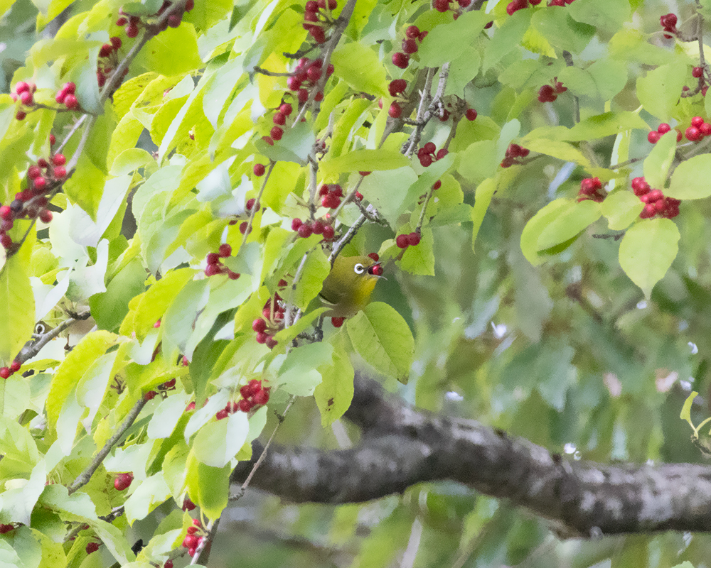 ツグミとマミチャジナイが7羽ほどの群れを成していたので、この実を食べに来るはず!と木陰に潜んで待っていたら・・・やって来たのはメジロでした😝