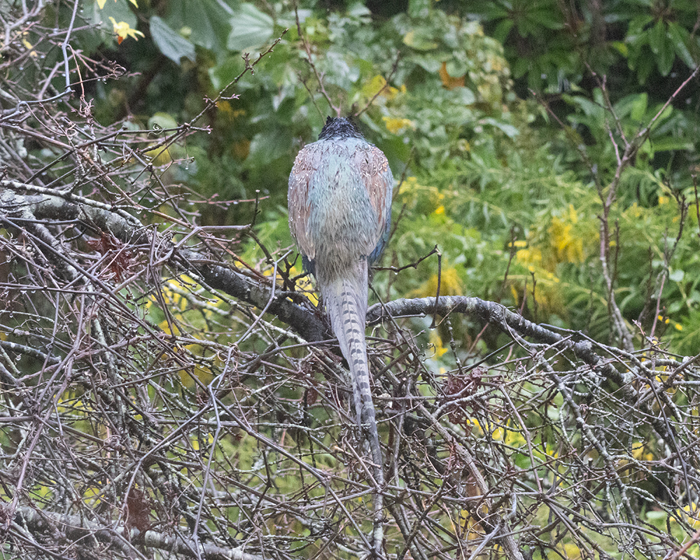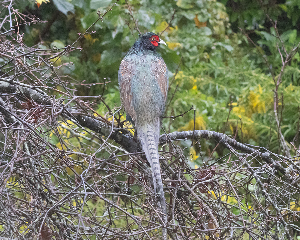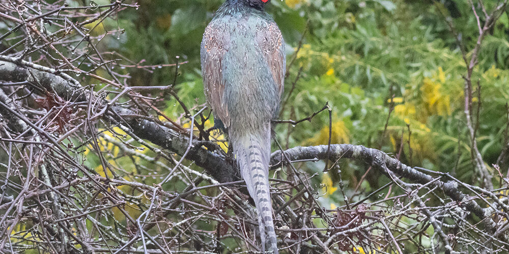 雨で濡れそぼったボソボソの背中が真っ先に目に入り、何かと思いましたが、キジのオスでした。