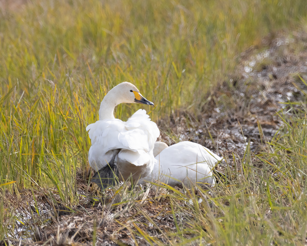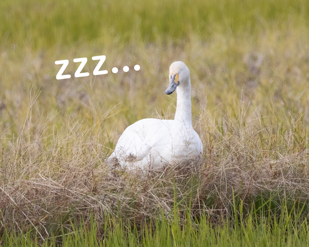 青いイネの中で過ごすコハクチョウの姿は、どこかセンチメンタルで甘酸っぱい雰囲気。きれいです。