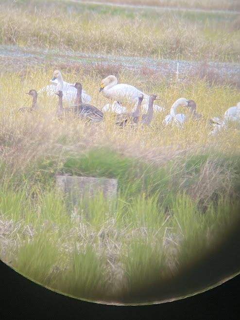 写真でしか分からないことはたくさんあると思う一方で、現場ではカメラを覗いている時間に得られるものの少なさにも気付く。田んぼでの観察は車の中からスコープで見る、に勝るものはない。写真はスマスコで良しとしよう😝