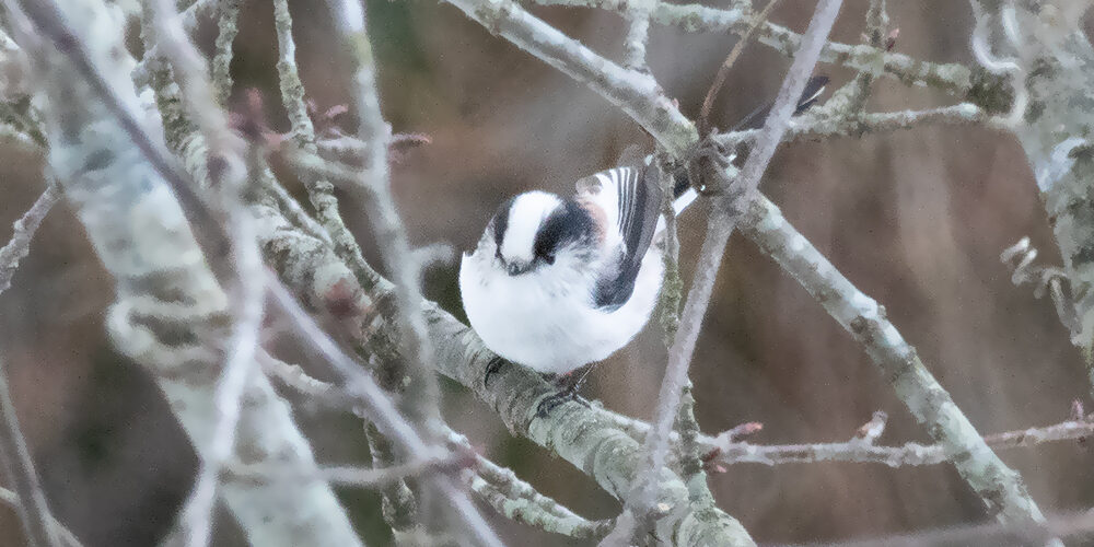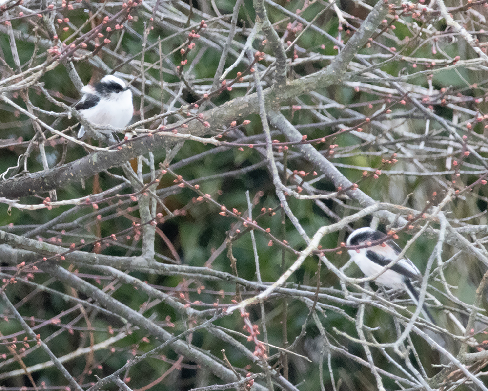 エナガは庭の葉の落ちた桜や柿の木などを例のごとくちょこまかと動き回り、こんな裸の木に何がいようものかと思う私を横目に一生懸命エサ探しをしていました。私には見えないけれど、何かしらいるのだろう。