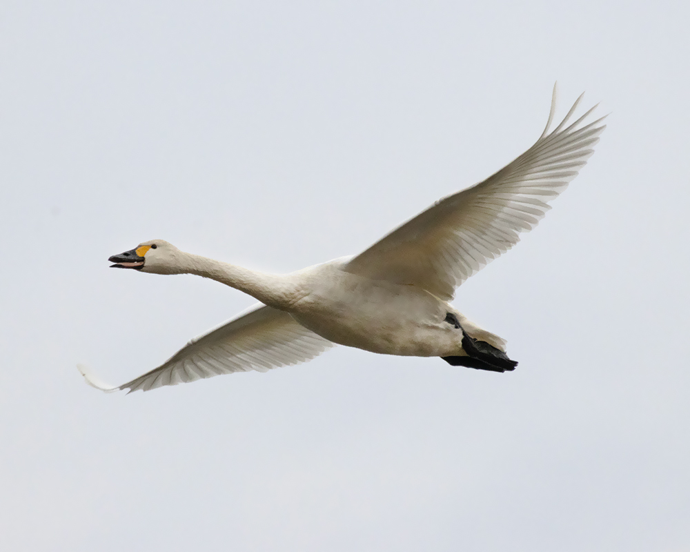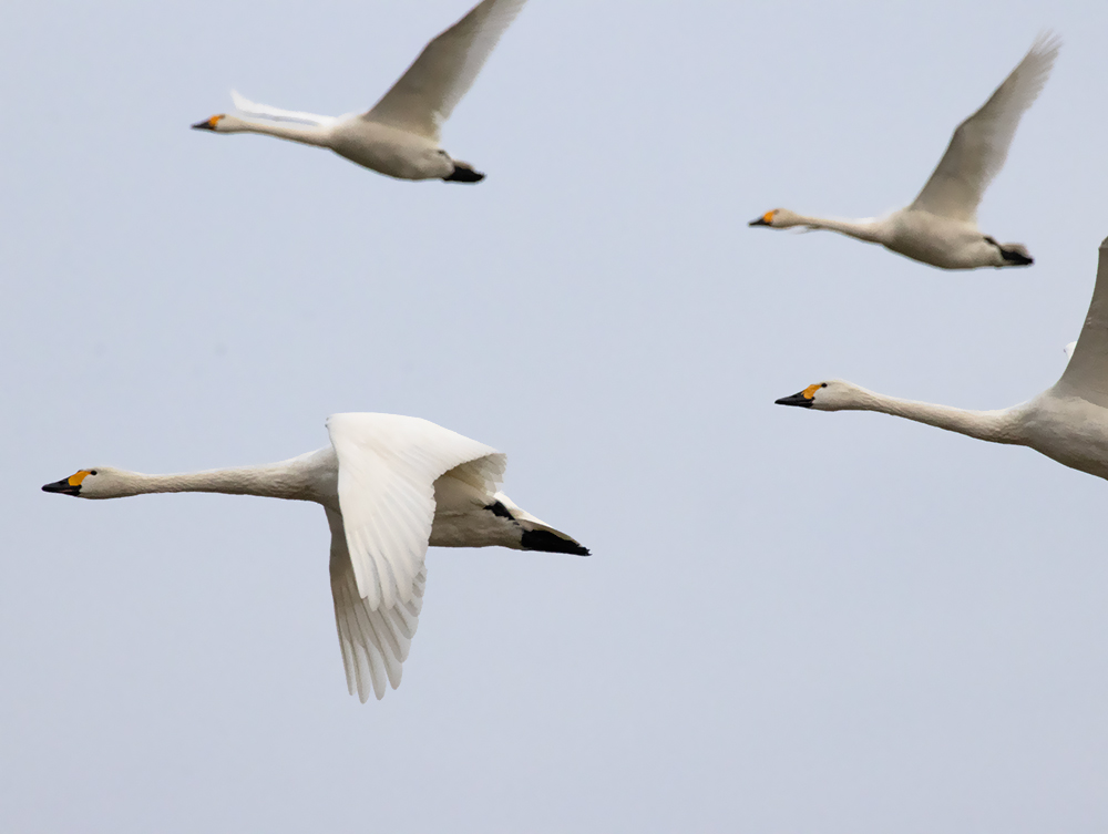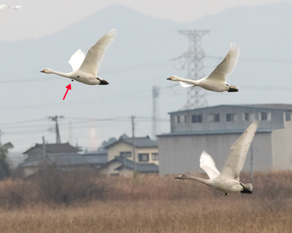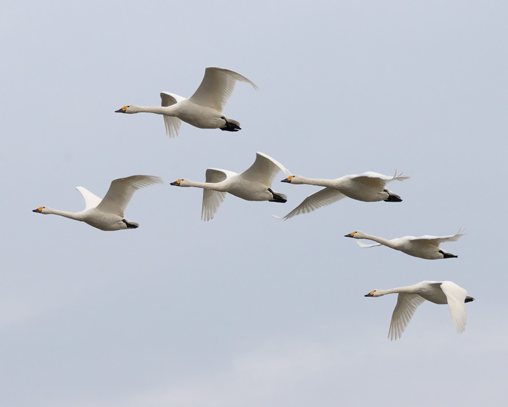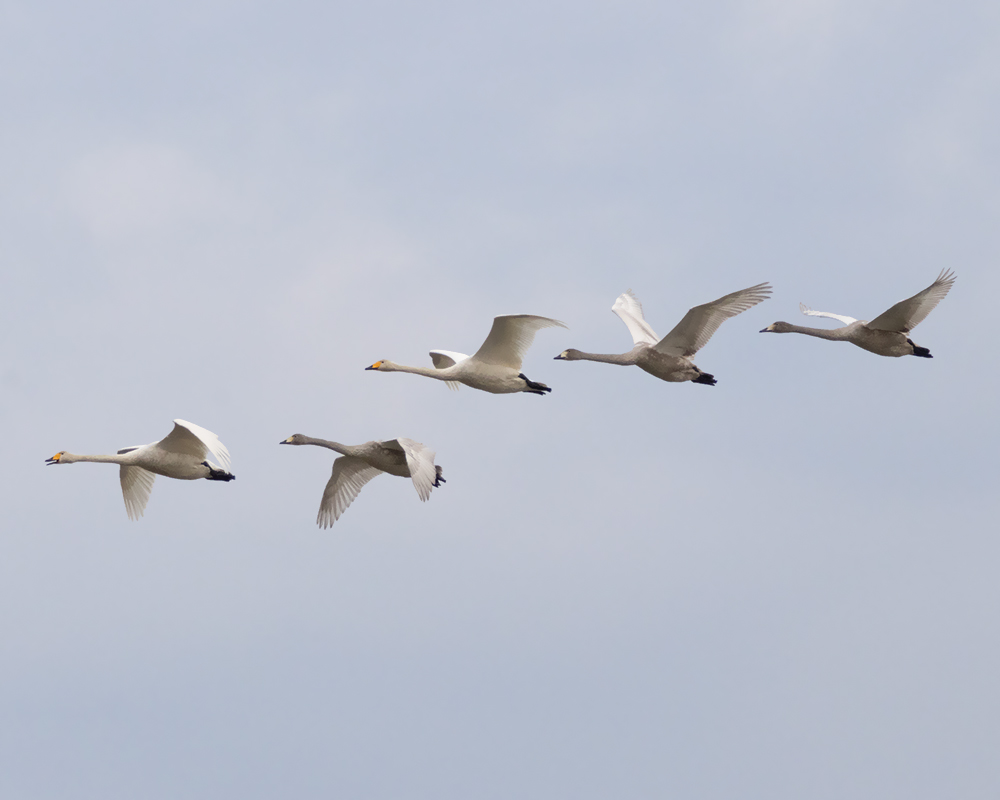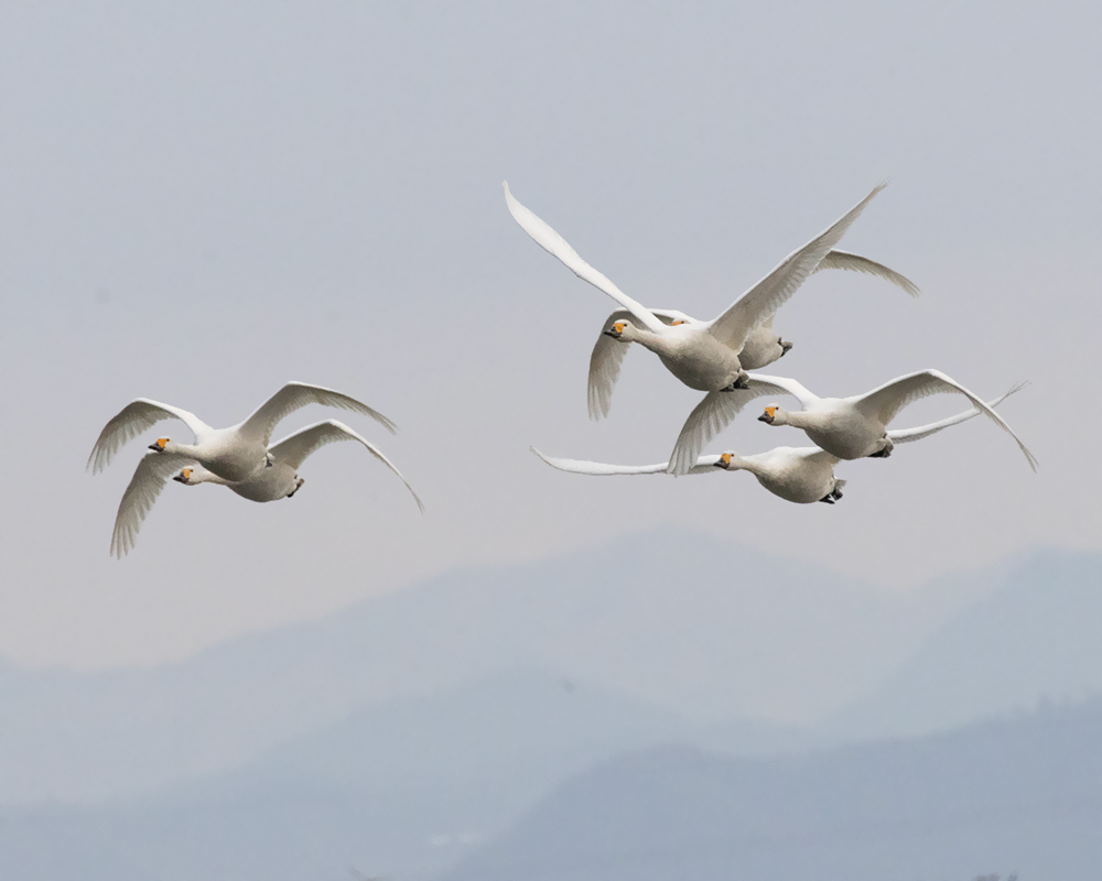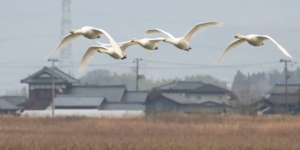 コハクチョウが飛んでいるのを見ると、遥か4,000km北にあるシベリアの大草原が目に浮かぶ。いえ、もちろん行ったことはないのだけれど、広大なシベリアの原野で子育てをしながら暮らすハクチョウたちを想像して、今いる越後平野が急にシベリアになったような錯覚に陥る。