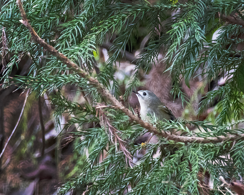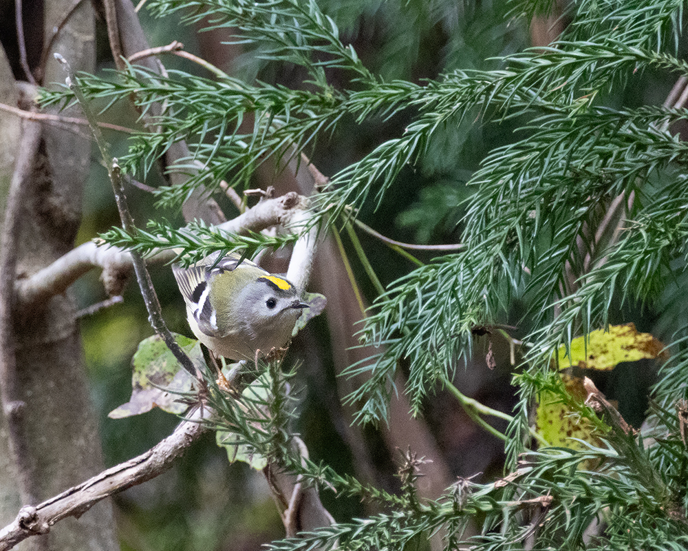 小さくて、頭のてっぺんが黄色くて(ここが開いて菊になる)、素早かったけど近かったからよく見られました。この、スギの込み入ったところに、まぁ入る入る。ずいぶん長い間いたので何とか写真に撮れましたが、キクイタダキは最初から写真に撮ろうと思っていない(撮れると思ってない)ので、かなり苦戦しました😇