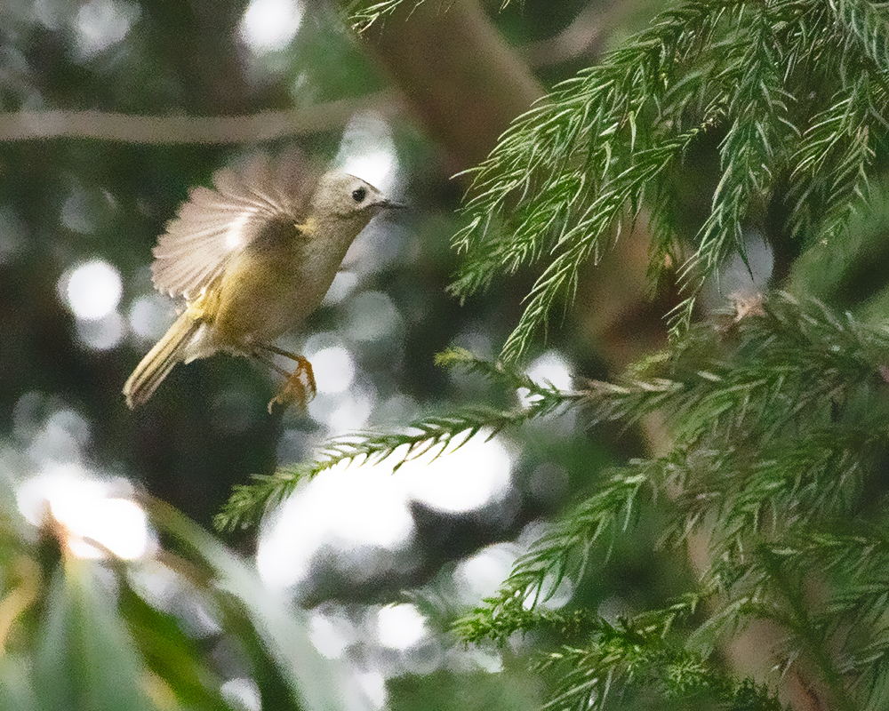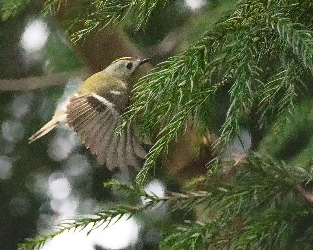 あと、全然知らなかったのですが、キクイタダキってすごくホバリングするんですね!むしろホバリングしかしない・・・枝から枝へ飛び移る時、上下左右の枝ならホバリングでフワフワ~っと飛んで、ヨシここに行こう、着地~みたいな感じで動いていました。