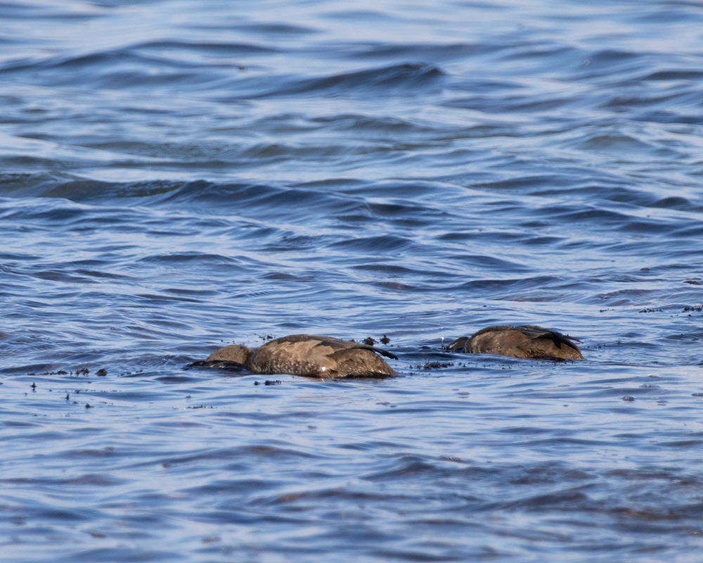 若オス1・メス1でした(オスは耳の丸の横に白い縦線がある)。耳のところの白い丸がおもしろいね!^^2羽で海の中に首を突っ込んでしきりに海藻などを食べているようでした。