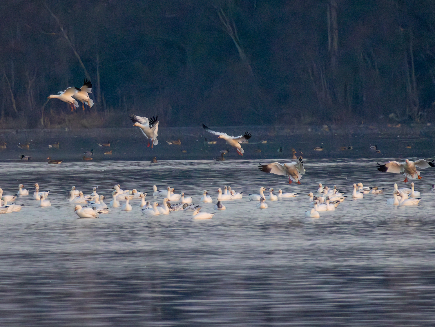 ところが、およそ1時間後にやってきたカメラのおじさんが車から降りてハッチバックを開けて三脚を立てる動作に、それまで安心して過ごしていたガンが一斉に首を上げまして、3分の1のガンが飛びましてですね・・・