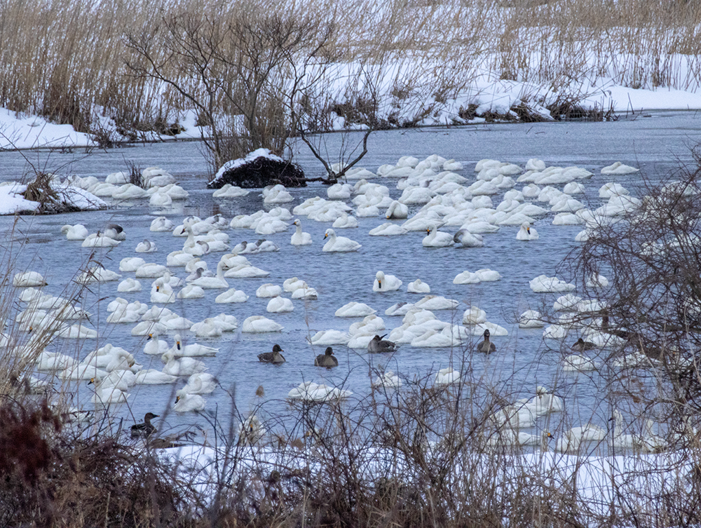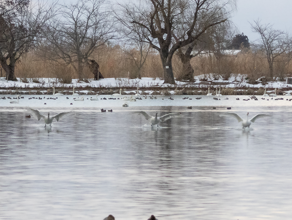 ところ変わって瓢湖へ。グループ展のチラシを観察舎に置いていただけるとの事で急遽行ってきました。土井さん、ご対応ありがとうございました。