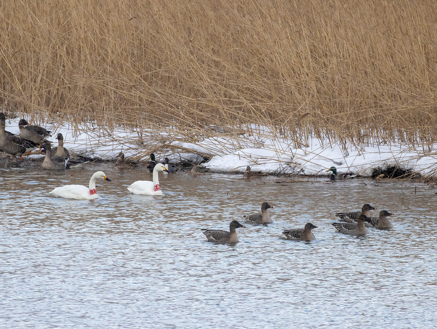 あとは、標識コハクチョウを発見。赤C77と赤C81、つがいのよう。