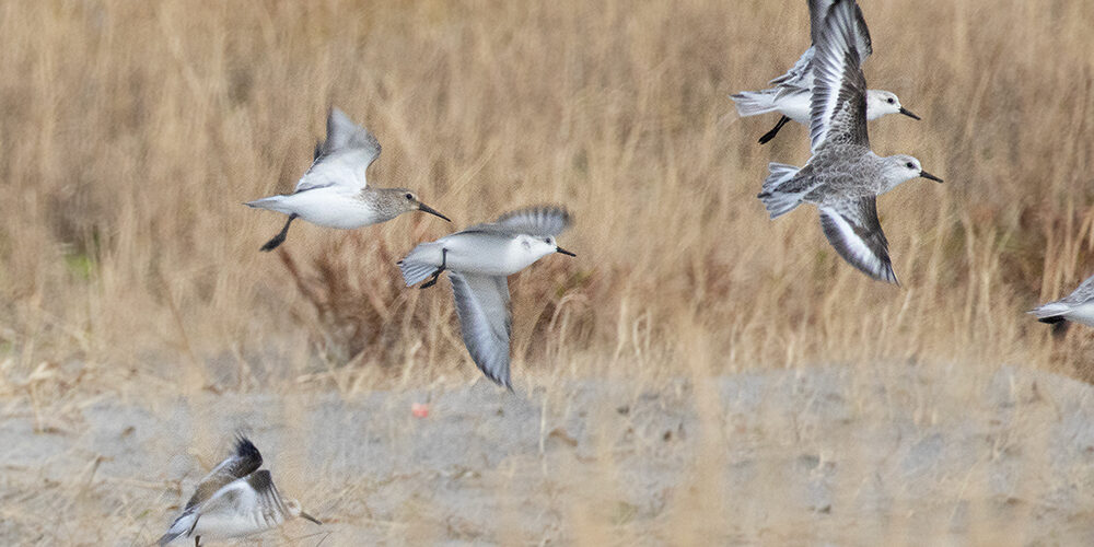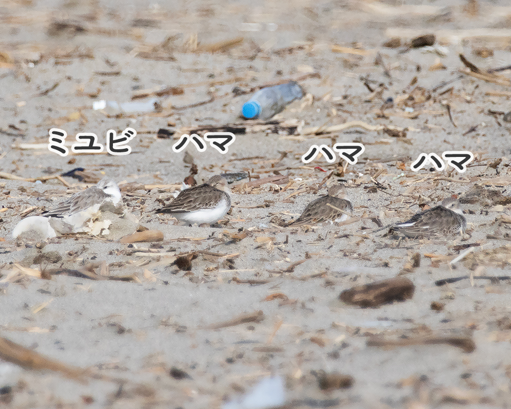 11月下旬、シロチドリ観察に行った浜で、ハマシギとミユビシギに出会いました。今まで、冬に浜で鳥を見たことがなかった私は、この時期でもシギがいるんだな~と喜ぶ。