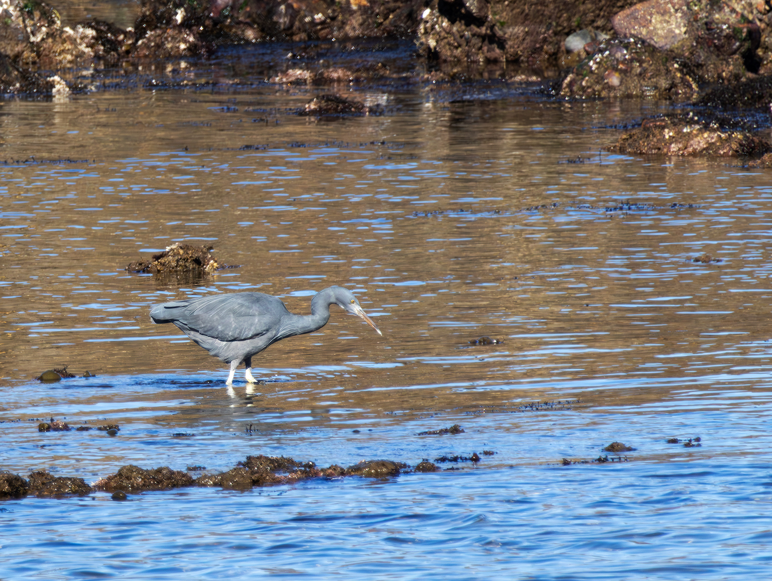 岩場で海の浅いところを覗き込んで、エイっとくちばしを突っ込みます。