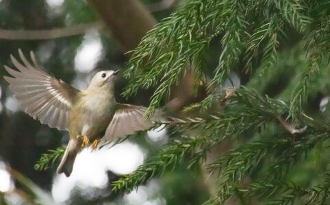 キクイタダキ。 標高の高い山の針葉樹に生息する日本で一番小さい鳥。体重は5グラムほど、との事で、ほぼ空気ですね。 普段見かける鳥ではなく、観察機会もほんと~に少ないのですが、山から降りてきているところに出会えて、人生で初...
